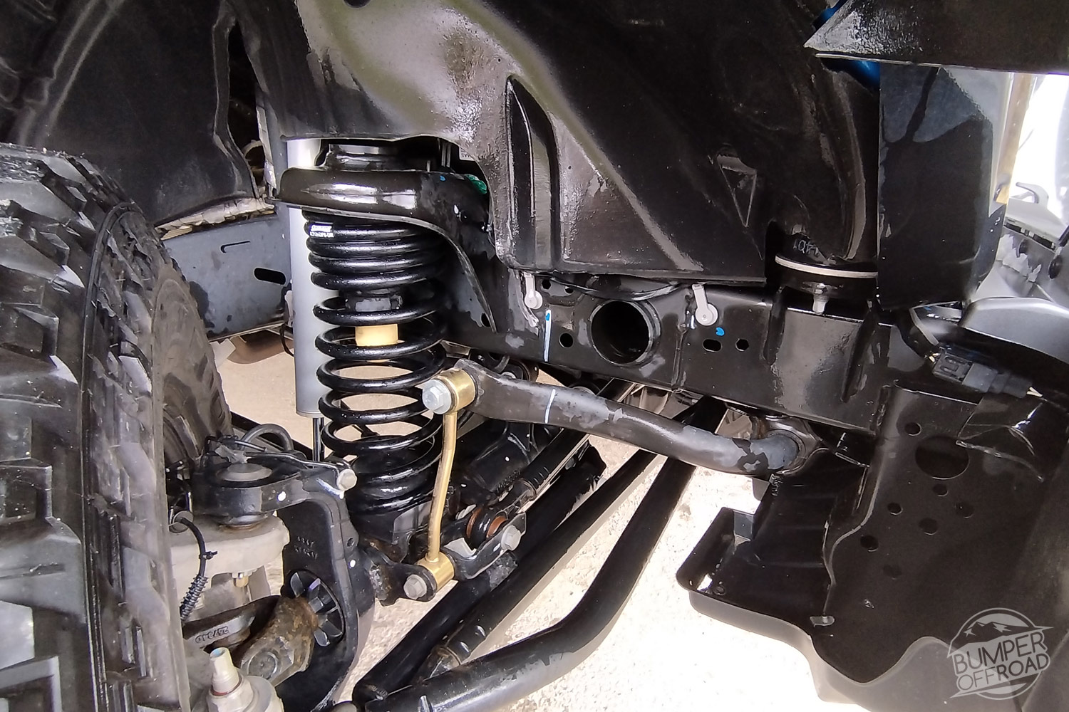 – Un attelage US, une suspension réhaussée renforcée SkyJacker, et des jantes KMC 9×17 Dirty Harry montées sur des pneus Cooper ST MAXX 315/70/17 pour des performances tout-terrain exceptionnelles.